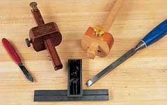 In addition to a mortise chisel and marking tools shown above, you need a mallet, a tenon saw, a bench hook, and 3/4″ bevel-edge chisel. Obviously, hand tools cost much less than a mortising machine. As for speed — that depends on how skilled you become — but after making a few, it’s not slow. For a one-off project, handmade can be quicker than machine-made. As for the pleasure derived from a well-executed handmade joint, well, you won’t know until you’ve tried it.