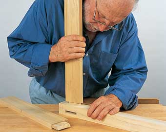 Now is the time to test the fit of the joint. It should be a tight push fit. If it’s too loose, try again. If it’s too tight, determine exactly why before you make adjustments. Look for crushed tissue or shiny areas that would reveal themselves if you closed the joint with clamps. If the tenon is too thick, make it thinner by clamping the workpiece in the vise and paring across the grain, never down it.