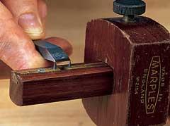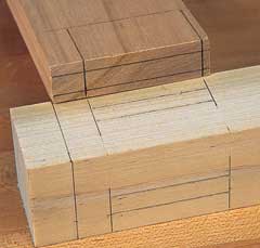 Set the tips of the mortise gauge spurs to the width of the mortise chisel. The importance of this setting will be discussed later. Two fence settings are needed: one for the mortise in the leg and one to scribe the tenon width onto the rail. Mark both parts and your joints should look like those in the photo at top right. After you chop the mortise, you’ll have to saw the tenon: how close you saw to the gauge line will be decided later.