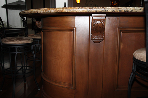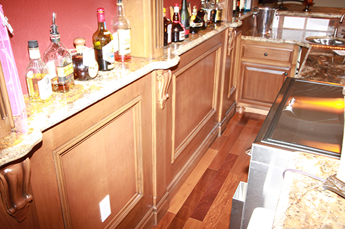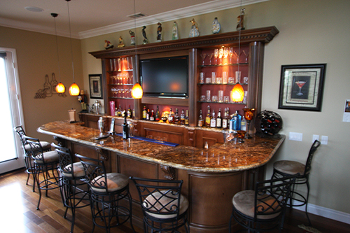 These are pictures of my home bar the wife and I built. All of the photos of the construction are here: http://howardboehm.com/bar/index.html