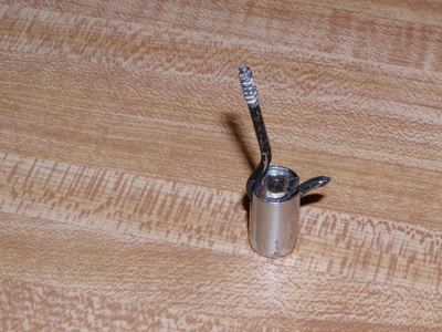 The hooks I used were about .5 in diameter. I cut a slot in a ~.25 in socket driver, attached that to my drill and with a little technique I’m placing these without a pilot hole or a bunch of wobbling. A larger hook may require a larger socket to slot.