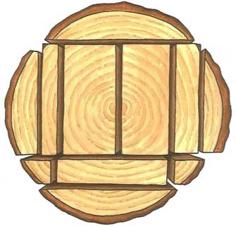 A log rule attempts to estimate the number of board feet of lumber in a log. (A board foot in its purest sense is a board 1″ thick, 12″ long and 12″ wide.) It is more difficult than you think, because kerf width will vary from saw blade to saw blade, waste will vary depending upon how the log is sawn, and each species of tree will vary in the amount of taper from the base of the log to the top. Log rules are based on mathematical estimates of the volume of a cylinder with taper adjustment, and a couple are even based on actually drawing board ends in a given size circle equaling the log diameter.