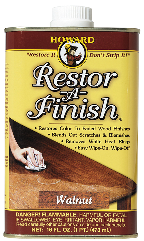 Howard set out to find a solution, and the results of his efforts in the test lab culminated in the product you can still buy today: Restor-A-Finish®. It’s a one-step wipe-on blend that can be used over any traditional wood finish, including shellac, lacquer and varnishes other than polyurethane. Restor-A-Finish penetrates through the finish without removing it, according to the company’s product description. It blends away white heat rings, water marks, sun fade, oxidation and smoke damage — many of the usual forms of deterioration and damage that can lead to stripping and refinishing.