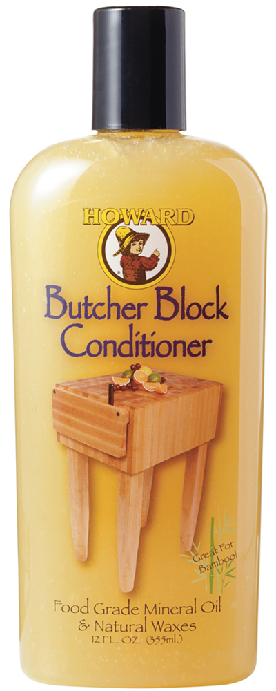 In addition to Restor-A-Finish, Howard Products manufactures 14 other products that provide do-it-yourself solutions for various wood care needs. For instance, Woodworker’s Journal often receives reader questions about how to finish and maintain wood cutting boards and butcher block surfaces. Consumers want food-safe finishing solutions that are both easy to use and also enhance the natural beauty of the wood. Howard Products has three options that can help: Cutting Board Oil, Butcher Block Conditioner and Cutting Board Cleaner. The first is a clear food-grade mineral oil enriched with vitamin E. It’s intended for raw wood surfaces as an initial finishing step. Evans says at least two coats of oil should be applied to saturate the surface, with 20 minutes to an hour’s drying time in between, depending on wood thickness and how quickly the wood absorbs the oil.