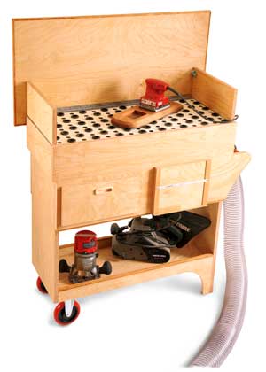 After several incarnations and input from most of the staff (people located from the East Coast to the West Coast and points in-between), we arrived at the cart you will find in our magazine pages. It controls and collects dust while sanding, it is a good size, has some nice additional features — in short, it works great.