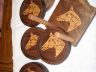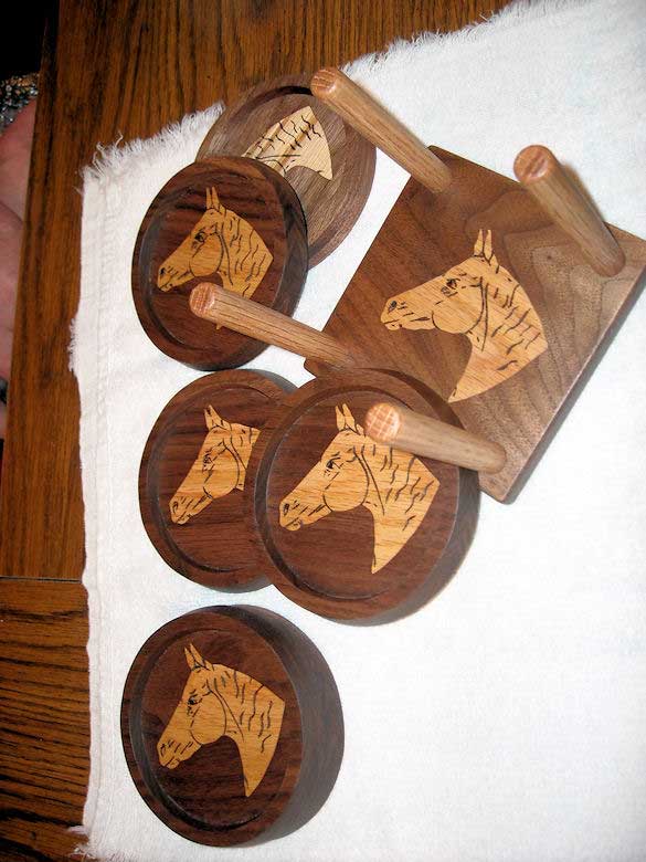 Just thought I’d show a couple sets of inlay coasters I recently made. Walnut and red oak, with a little pyrography for detail.