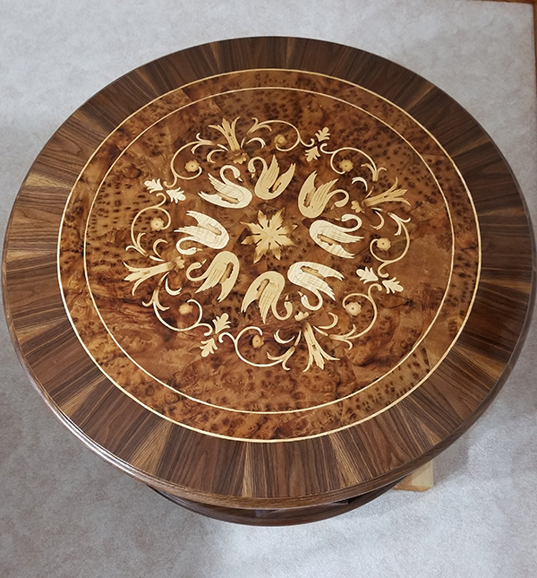 “Maybe a middle approach is to purchase some higher-end inlays and inlay those into some designed furniture. Fairly reasonable if you find what you like. Here are a couple samples of my inlaid projects.” – Pete Earleywine