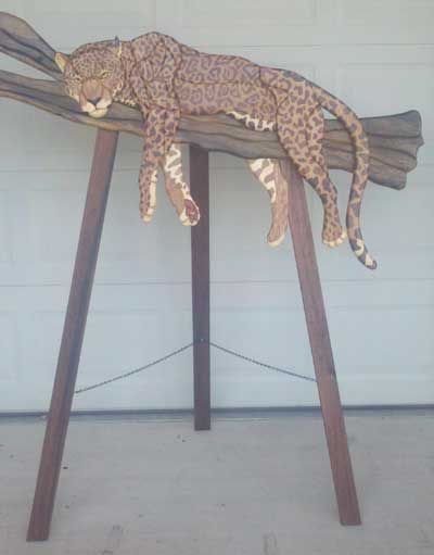Here is my Jaguar project in Intarsia. 725 pieces. Red Oak, Wenge,Eastern Red Cedar, Satinwood, Aspen, Black Limba, Walnut. About 100 hours.