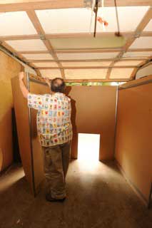 Me? I prefer an indoor/outdoor compromise. I have a large knockdown booth I can quickly set up in front of my open garage door. It’s basically just an air funnel with angled flat sides and top and a filtered fan at the small end. Even a cheap furnace filter is enough to keep the fan blades clean and trap most of the overspray before it heads outdoors to become a neighborhood nuisance. It blocks most of the garage opening and draws its clean air from a filtered open window or entry door. I get the best of both worlds: there’s plenty of clean, warm air but no dust or kamikaze bugs, and I can even spray when it threatens to rain.