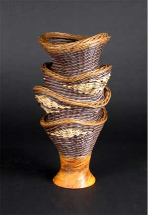 Jerry finds inspiration in looking at photos of baskets from friends around the world, but says he doesn’t really follow any particular design tradition. “I sit around and think, sometimes even dream, of a design that hasn’t been done before. It’s a challenge, because people have been making baskets since we lived in caves.” But, says Jerry, “As far as I know, I’m doing something you won’t see anywhere else, and that’s what’s exciting.”