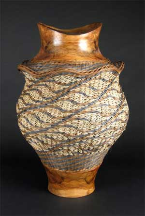 That was in 1987 and, in about 1991 or 1992, Jerry acquired a Shopsmith tool with a lathe. “I immediately started turning bases to make baskets on,” he said. The reason? “For one thing, I love working with wood. I always have,” said Jerry, who, along with his brother, experimented in his dad’s woodshop as a child. “I love the process, the feel of wood, the texture. As a natural product, you never know what you’re going to get.”