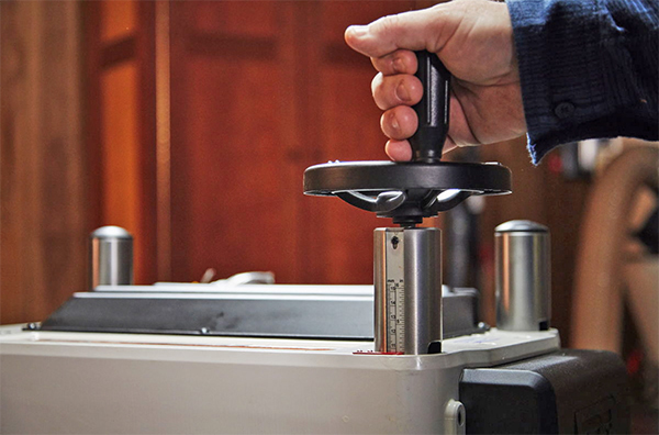 Both planers operate at a cutterhead speed of 5,200 RPM. A two-speed gear box provides dual material feed rates of 16 feet per minute (fpm) for a smooth finish when cutting harder woods and 20 fpm for faster dimensioning. You can shift between feed rates on the fly using a push-pull knob.