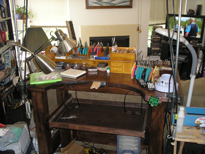A jewelers bench, something I really needed. The first picture is the completed desk, the second is the desk loaded and ready for work.