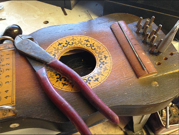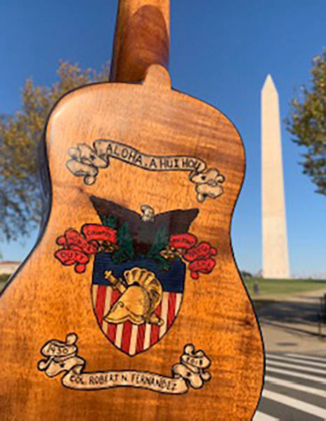 Most recently, he restored a Kamaka ukulele that his best friend’s father had purchased in Hawaii in the 1950s. “The hide glue was crystallized; the wood was very dry; it had wear from being played so much so the top was starting to separate from the sides.” Working with Kamaka Ukulele and the United States Military Academy at West Point, Josh both repaired the instrument and adorned it with the West Point crest on the back, the father’s retired rank of colonel on the fretboard and Hawaii’s Diamond Head on the headstock for presentation at the funeral at Arlington National Cemetery.