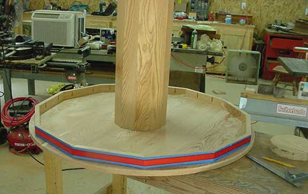 This is a game table built out of Kentucky Coffeebean. The pedestal has 12 sides and is 29 inches tall, the top is 43 inches in diameter.