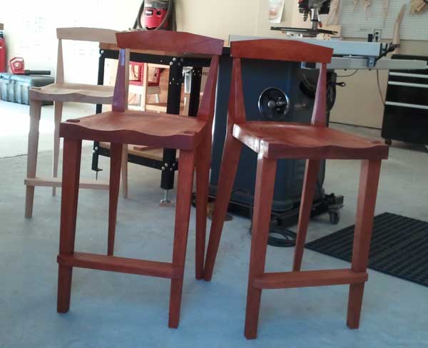 The chairs are made from cherry with a Danish oil finish. There will be two more chairs, with a breakfast table which will have a copper top.