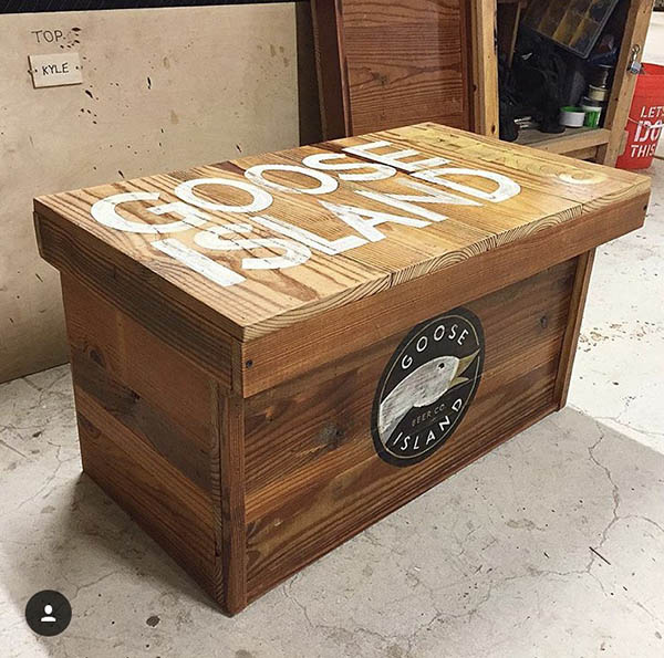 He has also learned from other woodworkers, such as his brother-in-law’s father, a retired woodshop teacher, with whom he worked on building a pop-up beer booth for Goose Island Brewery. “He did some cabinetry and a lot of furniture, and he had showed me some things,” Kyle said. Following that Goose Island project, “I started getting orders basically online, and I kind of slipped into [woodworking] full-time,” Kyle said.