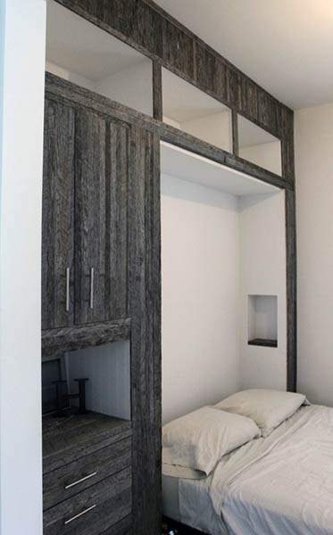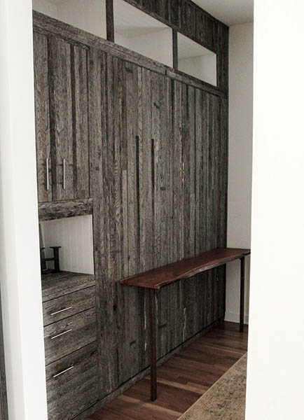 One of his favorite non-corporate projects, for example, was a Murphy bed and desk build. Kyle had never built a Murphy bed before, and the client’s request included making adding a desk to the room, which doubled an office and occasional guest room, as well as making the bed “to where you wouldn’t even see it: it almost just looked like a reclaimed wood wall.”