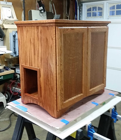 My daughter asked if I could come up with something that would hide the cat’s litter box which she has in a high visibility area. Using sketchup I designed the pictured piece.