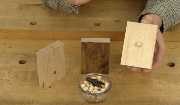 How to cover exposed screw heads with wood plugs. Learn how to make and install wood plugs. Chris shows you how to cut custom plugs from any wood species.