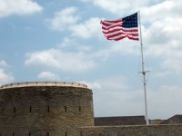 A very big flagpole for a very old fort.