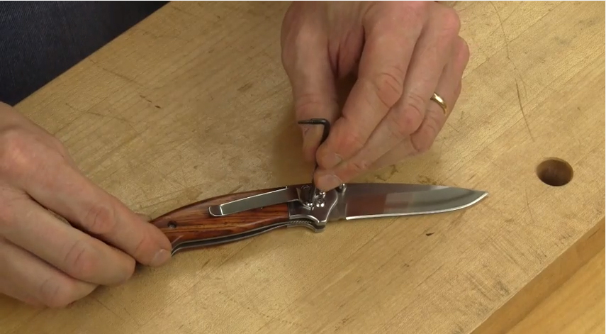 Chris Marshall demonstrates his process for using a few pieces of scrap wood to create some attractive wood handles for a folding knife.