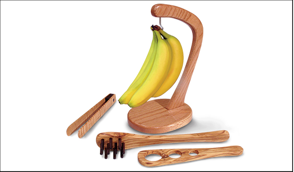 3 Kitchen Accessories: Whip up a few last-minute wooden gifts for the kitchen, even when there’s no time to spare: it’ll take you just a twinkling to turn out some tongs, a banana hanger and a pasta measure and server.