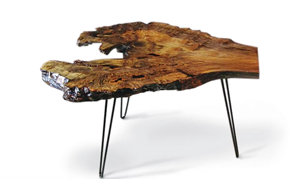 Slab Top Table: A naturally shaped slab of wood lends an impressive look to this table, as publisher Rob Johnstone takes on the task of designing around an organic shape.