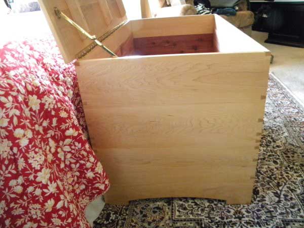My wife’s blanket chest. I won’t tell you how many pieces ended up in the “oopsy” pile or how long it took. Hard maple and aromatic cedar. I used a Fibonacci series to space the dovetails. My “magnum opus” for now.