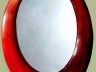 Frame is hand carved from 8/4 Alder. OD is 26×32. Stains are Universal tints in alcohol, and translucent tints in the 24 coats of Good Stuff, and 6 coats of carnuba wax. Mirror is 1/4″ plate.