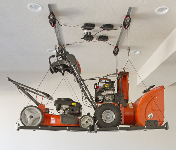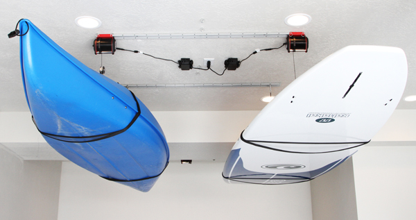 “We’ve also engineered the MYLIFTER gearbox to automatically lock when not moving so heavy hoisted items can be secured,” Sumsion adds. Another MYLIFTER benefit is that it can be daisy chained together. Since most garage ceilings have just one or two outlets, only one receptacle of a 110-volt outlet is required to power multiple lifters.