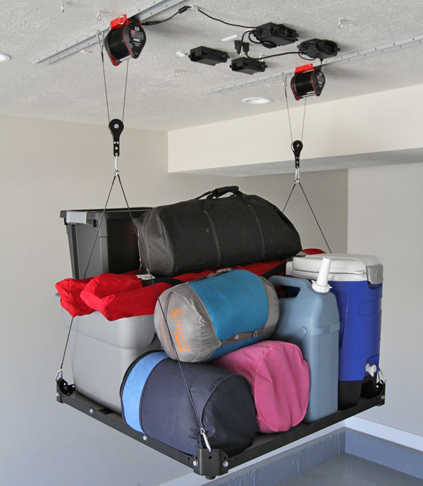 If your garage does double duty as both a parking/storage space and a woodworking shop, you know how valuable your floor’s footprint is. Wouldn’t it be great to be able to store bikes, lawnmower, containers of “overflow” and so forth somewhere else, so you could dedicate even more area to your woodworking needs?