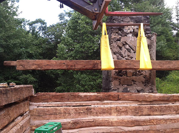Logistics: The equipment list can include a telescoping material handler, trailer, and tractor, all the way down to hand tools, wedges, and mallets. Rain exposure will negatively affect the old wood, so short-term and long-term storage must be procured. Is it down a back road and up a mountain? Usually it is. Careful planning is required to get all needed equipment onsite and in position.