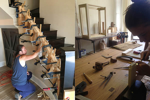 Milling: Because the supply of wood is finite, the Slatons carefully control the milling process with their own sawmill. Beams and logs are sawn to a cut list that maximizes the amount of wood recovered and gets the best cut out of each piece. Milled material moves to the shop where the parts are dimensioned and joined with hand tools or by machining. The overarching principle is to maintain the wood’s character as much as possible.