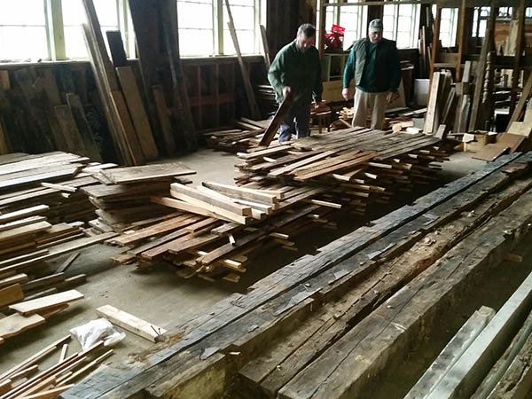 Sorting: Most of the material is designated for a specific build and is stacked and stickered according to a cut list. Material is then sorted by color, age, grain pattern, and presence of nail holes, saw marks, or other characteristics. Certain parts lend themselves to certain projects. Tongue-and-groove flooring can be easily made into solid wood cabinets, wide boards can be used for case construction or flooring, and hewn beams are popular as mantels.