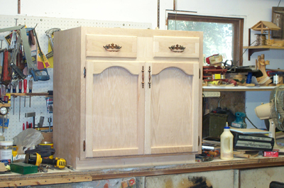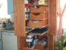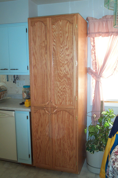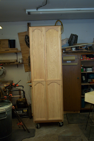 This project was something my wife was on me to build and put into our kitchen. It is all oak plywood and 1 x 2 oak. It was a lot of fun to make, but getting it into the house was not. It measures 7′ tall x 25″ deep x 26″ wide.