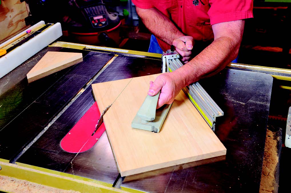 Make the molding strips that hold the glass in the frame by first routing a length of stock with a 1/4″-radius piloted router bit, then cutting off a 1/4″ by 1/4″ strip on the table saw. Now set the table saw blade to a 35˚ angle and bevel the front edge of the glass frame, as well as the top edge of the case front. Use a small router and piloted 45˚ bit to put a small chamfer around all the edges of the frame and top (but leave the hinged edges unrouted). Also chamfer the top and the ends of both case sides; these create reveals where the sides join the front and back.