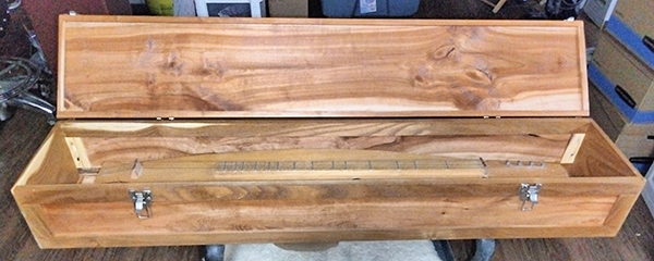 “I made this storage box for my dulcimer, probably 25 years ago. Our instructor had picked up the wood from a local sawmill and allowed me to use it for the project. There was a lot of grain direction change, and it was impossible for a novice to keep from chipping out the wood on the jointer and planer. It is still one of my favorite builds due to the funky look of the boards. I suspect that your project will be much nicer. Have fun with it!” – Randy Martin