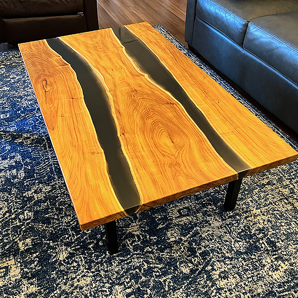 “Here is a picture of a coffee table I built out of two live-edge slabs of Osage orange. I finished the table with Rubio Monocoat.” – Bill Swenson