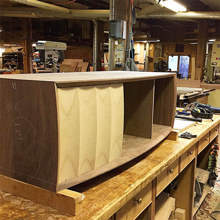 He’s been running his own shop in New Hampshire for the past eight or nine years, and has intentionally made the decision to keep it a one-man operation. “That means that I don’t tend to go after just runs of standard cabinetry. I tend to be more niche than that. At the end of the day, I am in it to make a living, and the things I can make money on tend to be the more built-in cabinetry type stuff” – but not necessarily just the prevalent “frame-and-panel stuff with a classic molding of some kind.”