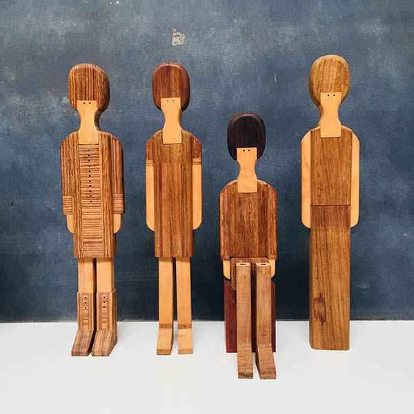 That version was the third semester assignment in the college woodshop classes: to make a piece of furniture. “The boys all made stereos, and the girls all said, ‘We’re going back to ceramics. We’ve turned our wooden bowls, and we’re done with wood. But there I was.” At the suggestion of her teacher, she created lifesize versions of her dolls as chairs – with extras. “I thought, ‘If I make 6-foot wooden doll, it’s going to be really heavy, and it’s going to be really expensive for my parents to buy this wood. So I’ll make it hollow. I’ll make a series of boxes, put them together. And then I thought, ‘Well, that’s going to be wasted space, so I’ll make drawers and hinges and secret compartments, so that’s what I did. And I landed, me and my two dolls landed, on the cover of the L.A. Times Sunday Home magazine.”