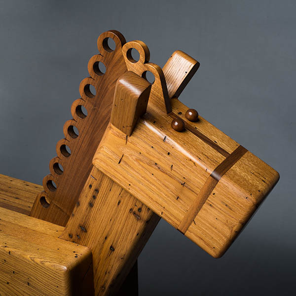 An acquaintance of Sam Maloof and Wendell Castle, Pamela describes herself as a mid-Century woodworker. Although her work is difficult to categorize, she said, “I have stayed true to my original idea in the realm of Sam Maloof and George Nakashima, who hit upon a style early on and stayed with it.” In her case, “It’s like everything I’ve done has been about playing.”