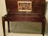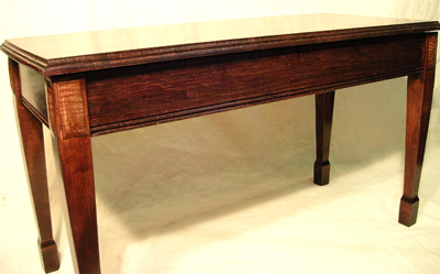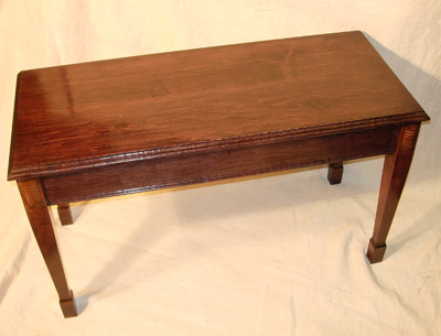 This is an older styling Piano Bench made from hard maple with spade legs. The legs have Myrtle inlay.