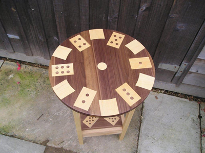 These are two side tables I was asked to make for a group of guys who play poker. The brief was that they had to look like a poker chip.