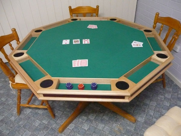 Hi This is a poker table that I built. I didn’t build the stand but just put it on a stand from an old pine table that I had. I think that I will build the stand tho as it would look better. – Stuart Halligan, Perth, WESTERN AUSTRALIA