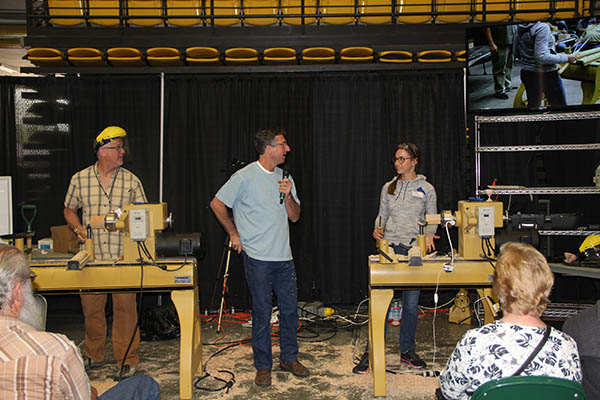 Demonstrators from the workshops hail from places like France, Jerusalem and the United Kingdom, as well as across the U.S. Their topics cover a variety of techniques, including spindle turning, working with resin, sharpening, segmenting, threading wood for woodturners and more. Project-based demos include boxes, bowls, a walking stick and even a fidget spinner.