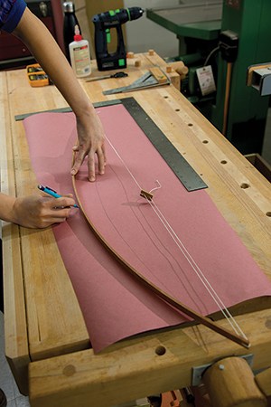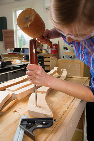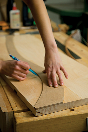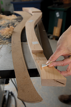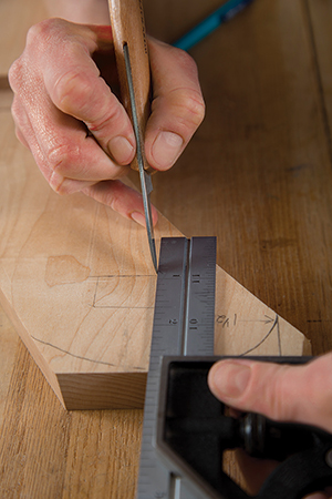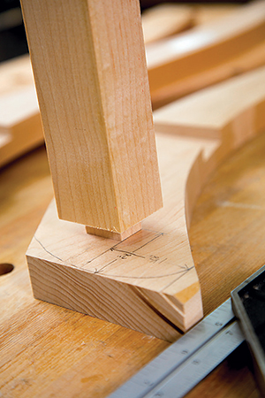I developed the leg shapes from a series of sketches, then moved on to a couple of full-size paper mock-ups. A flexible scrap-and-string curve bow will be a big help in drawing these leg curves when you make a full-size paper template. Use the gridded Drawing to help you plot points on a full-size grid, then connect the dots to form your leg pattern.