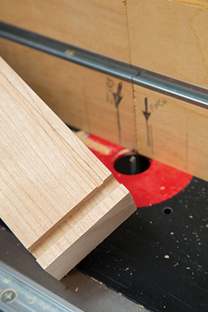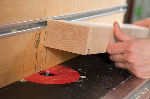 After they’re done, mark your router table’s fence so you’ll know where to start and stop the groove cuts in the end pieces without cutting too far. Make these “drop cut” style.