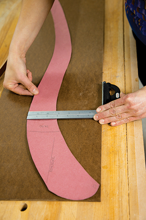Next, mark the pattern with the dado locations, cut it out, and use it to make a rigid template from 1/4″-thick MDF or plywood. While the tops of the legs will end up curved, keep the top of your leg template flat so you can align it accurately with the dadoes on your leg blanks.