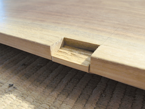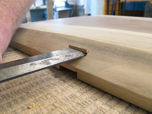 The waste in between was chopped out “dovetail” style — working down and in from both top and bottom faces of the board.